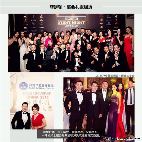 礼服租赁 菲狮顿提供男士礼服租赁、商务正装租借、宴会主持人西服、明星剧组西装出租、新郎伴郎礼服租赁服务,全套搭配,提供马甲、衬衫、领带、领带、袋巾、胸花等配饰,不提供鞋子。