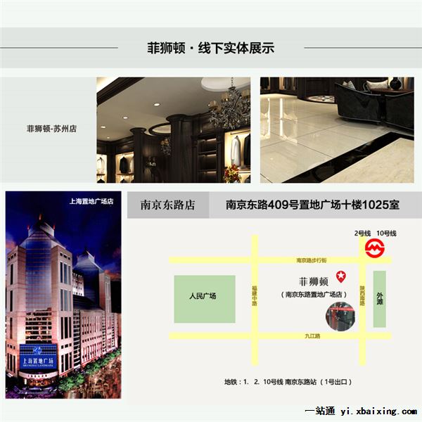 菲狮顿西服定制店:上海市黄浦区南京东路409号置地广场十楼1025室 交通:上海地铁二、十号线南京东路站1号出口,九江路山西南路交叉口。