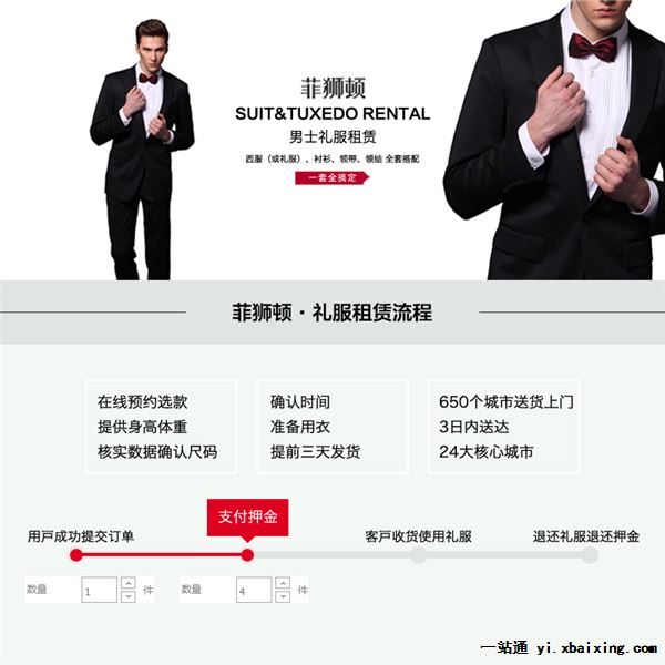 礼服租赁 菲狮顿提供男士礼服租赁、商务正装租借、宴会主持人西服、明星剧组西装出租、新郎伴郎礼服租赁服务,全套搭配,提供马甲、衬衫、领带、领带、袋巾、胸花等配饰,不提供鞋子。
