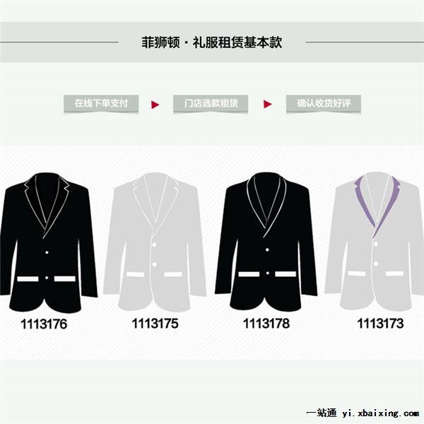 礼服租赁 菲狮顿提供男士礼服租赁、商务正装租借、宴会主持人西服、明星剧组西装出租、新郎伴郎礼服租赁服务,全套搭配,提供马甲、衬衫、领带、领带、袋巾、胸花等配饰,不提供鞋子。